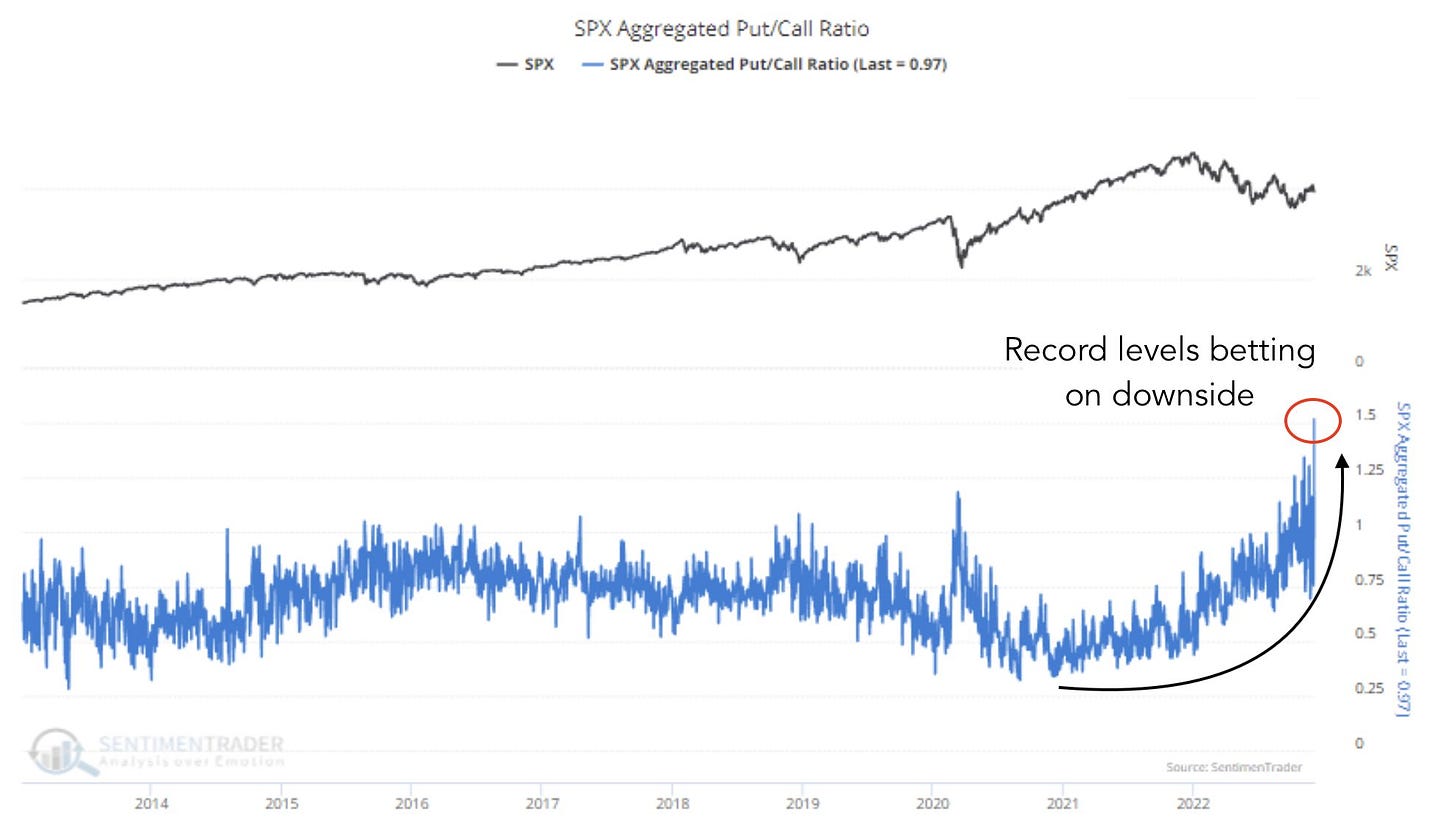 That’s right, the yield curve is hinting that a potential black swan event to occur. Which bring us to the next question, if markets have fully priced in this anticipated event, as sentiment from investor positioning is telling us that most if not all are bearish.